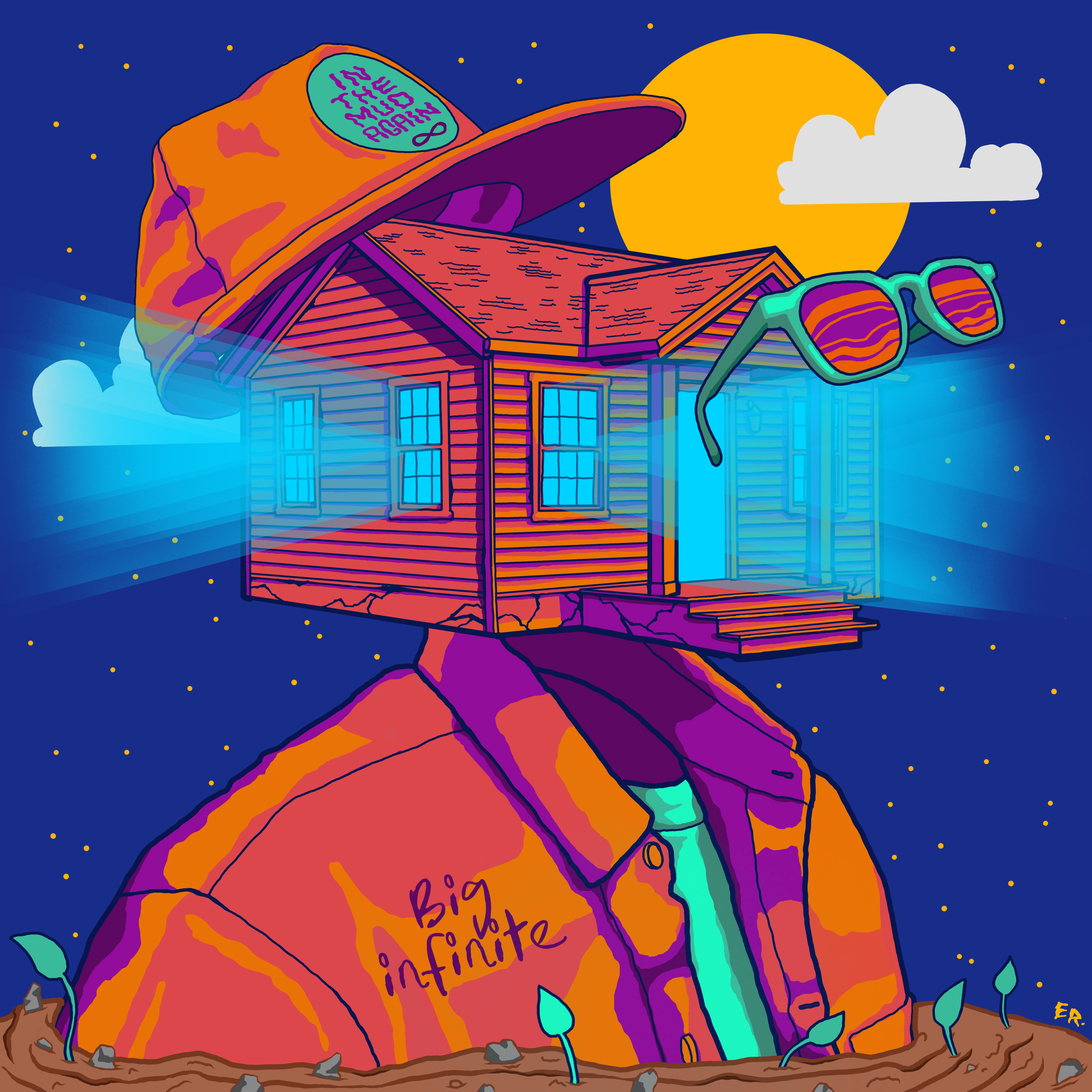 I had the pleasure of working with Big Inifinite on designing the cover for their recent single “In The Mud Again”. I’ve designed a few things for them in the past when they were called Fiction 20 Down back in 2011. I had a lot of fun creating this artwork for them. Using a style of I’ve explored in recent years when painting a mural, I brought this composition into this design work.